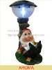 solar garden lamp with gnome Material: Resin Size: 23.5*15.5*31CM Packing:4PCS/0.081CBM Recharged by solar panels under sunlight Light turns on automatically when dark